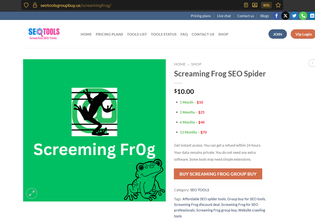 Visit the Screaming Frog Group Buy page, choose your plan, and get instant access to Screaming Frog’s premium features.